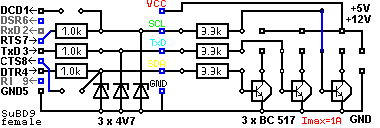 Ansteuerung von 4 LEDs an den 2 Steuerausgängen der Seriellen Schnittstelle