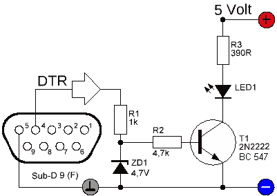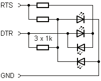 Ansteuerung von 4 LEDs an den 2 Steuerausgängen der Seriellen Schnittstelle